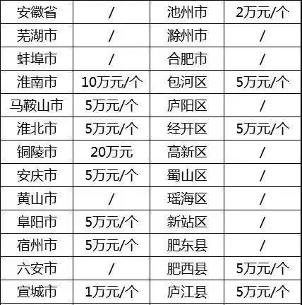 安徽省各地市資金扶持